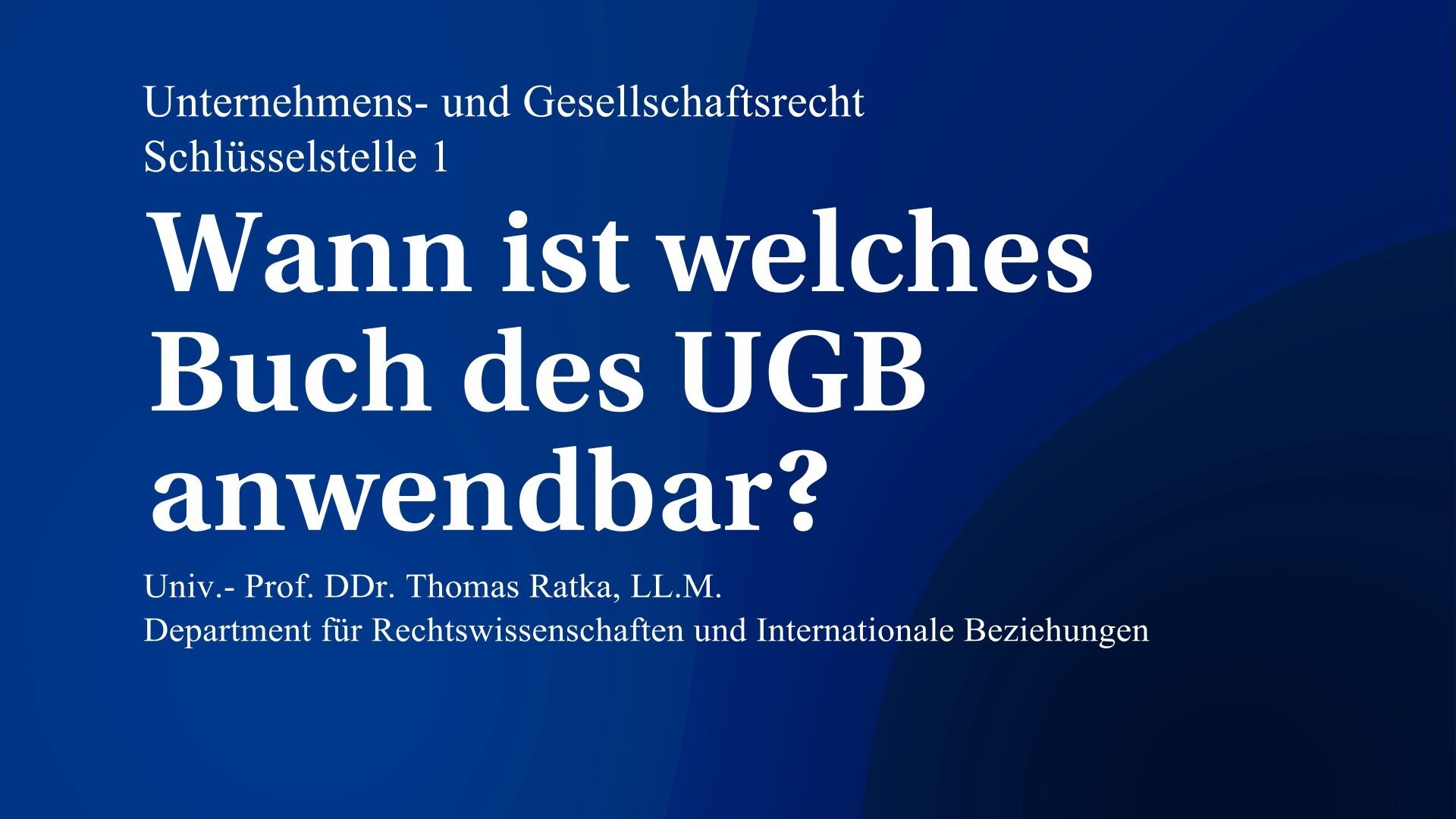 Vorschaubild "Wann ist welches Buch des UGB anwendbar? Schlüsselstelle 1 Unternehmens- und Gesellschaftsrecht"