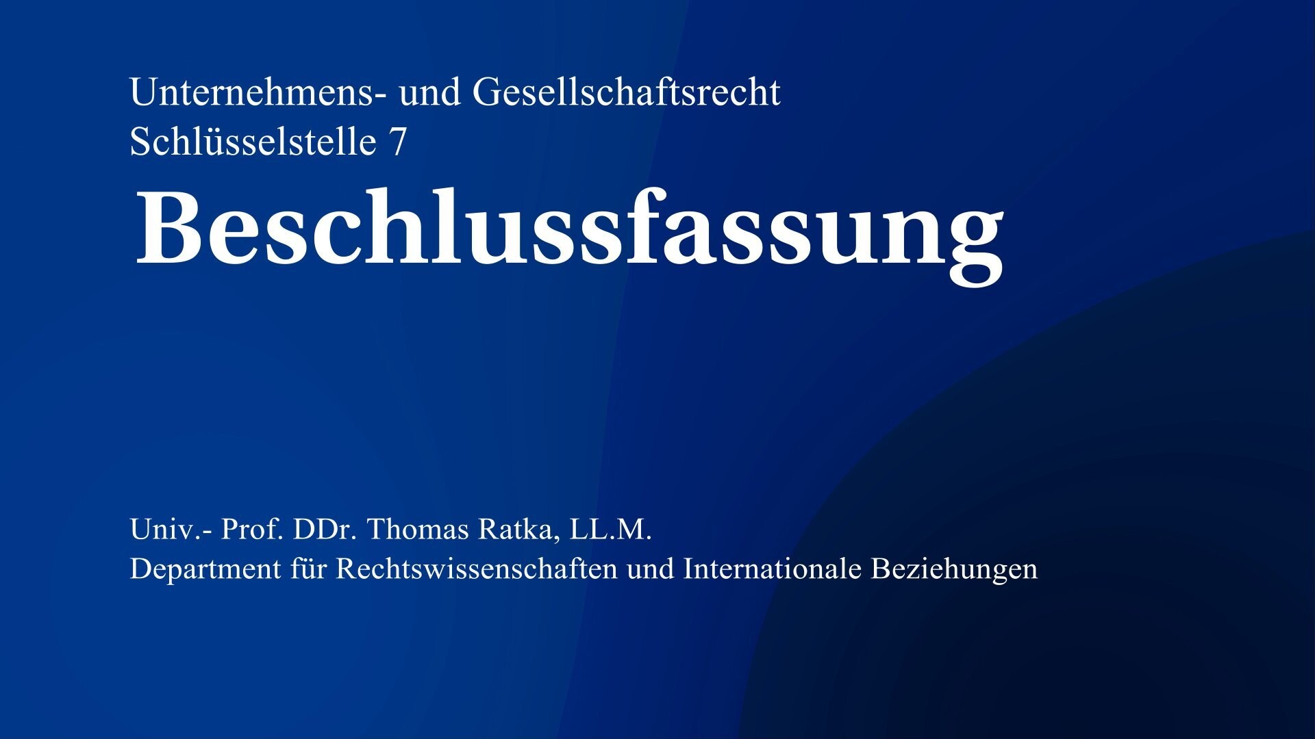 Vorschaubild "Beschlussfassung: Schlüsselstelle 7 Unternehmens- und Gesellschaftsrecht"