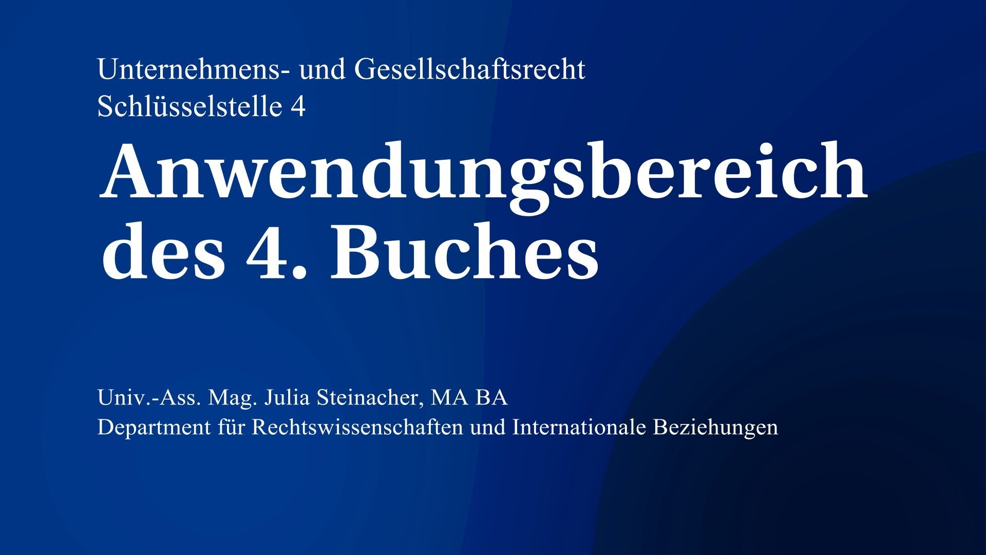 Vorschaubild "Anwendungsbereich des 4. Buches: Schlüsselstelle 4 Unternehmens- und Gesellschaftsrecht"